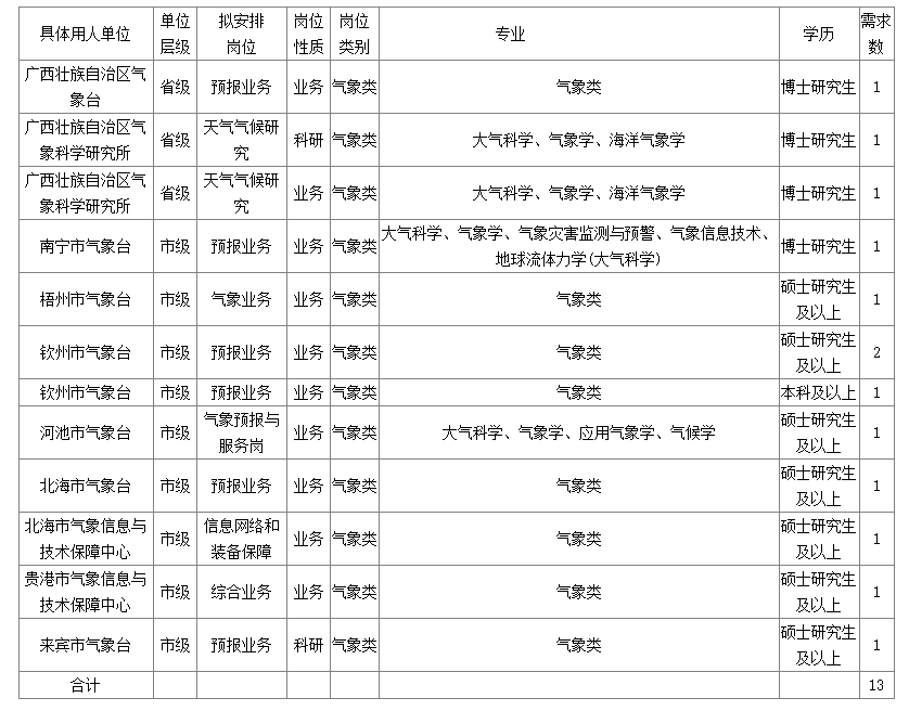 廣西氣象部門2024年度事業(yè)單位招聘計劃明細表