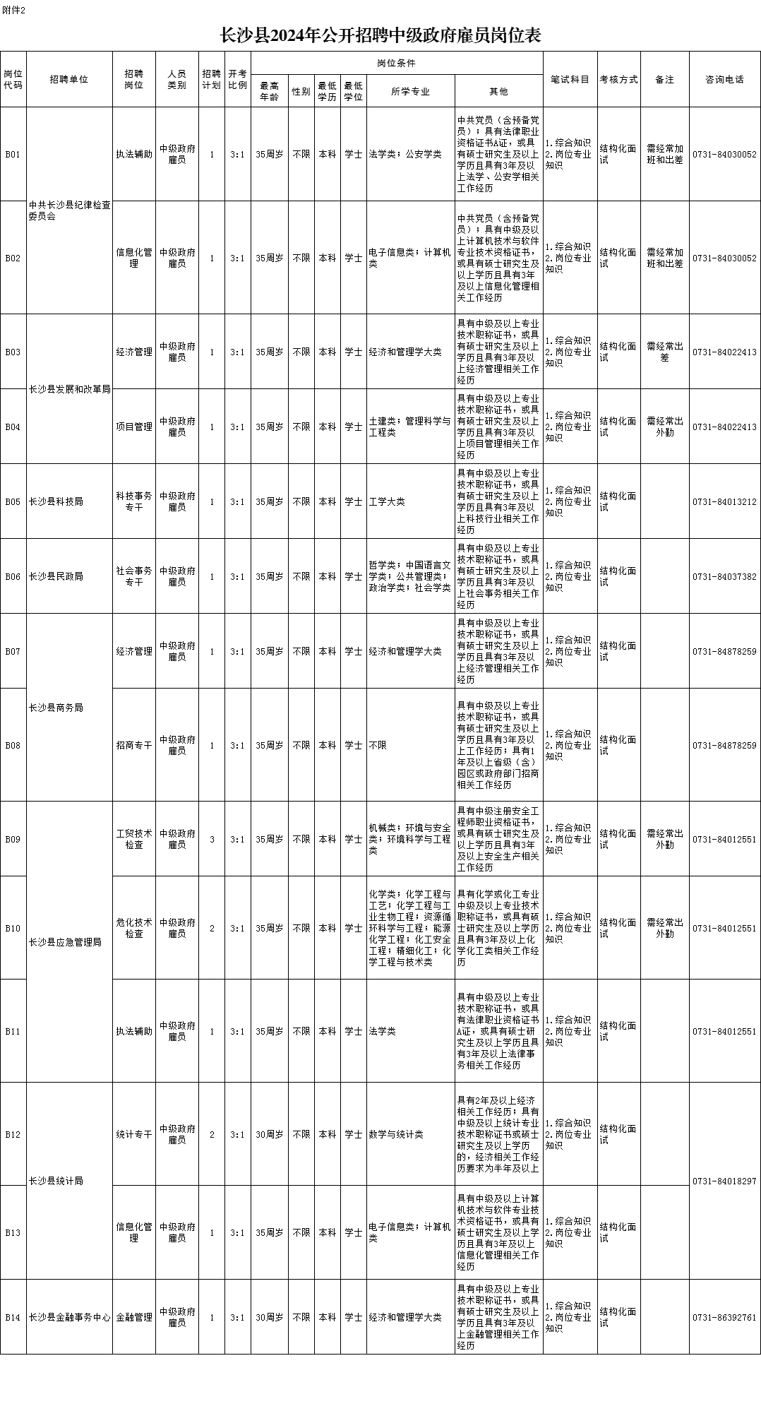 2.長(zhǎng)沙縣2024年公開招聘中級(jí)政府雇員崗位表
