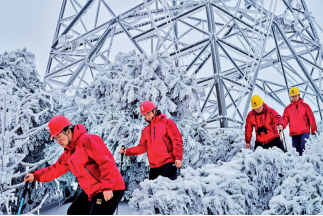 2024年2月,浙江迎來新一輪低溫雨雪天氣,位于紹興山區(qū)的500千伏鳳巖、鳳蒼等多條供電線路出現(xiàn)不同程度的覆冰情況。為保障當(dāng)?shù)毓╇娋€路的安全穩(wěn)定運行,截至2月26日,國網(wǎng)紹興供電公司共出動紅船共產(chǎn)黨員服務(wù)隊18支,順利完成了9條覆冰線路直流融冰工作和配電網(wǎng)搶修工作。圖為2月26日,紅船共產(chǎn)黨員服務(wù)隊隊員對500千伏鳳巖5832線71號塔-72號塔覆冰嚴(yán)重區(qū)段開展特巡工作。新華社記者 金良快/攝