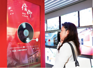 2023年9月11日,“永恒的誓言——中國共產(chǎn)黨入黨宣誓文物史料專題展”開幕式在中共一大紀(jì)念館舉行。展覽展出文物史料270件(套),引領(lǐng)觀眾在入黨誓詞的發(fā)展演變中領(lǐng)會中國共產(chǎn)黨人的初心和使命,從踐行誓言的典范中感悟錚錚誓言中的思想內(nèi)涵與精神力量。圖為當(dāng)日,參觀者通過多媒體裝置聆聽普通黨員講述自己的入黨故事。新華社記者 劉穎/攝