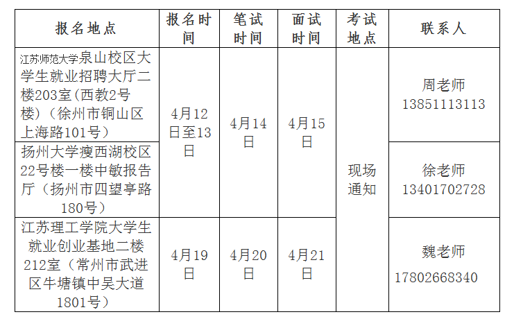 本次招聘在揚(yáng)州大學(xué)、江蘇師范大學(xué)、江蘇理工學(xué)院分別設(shè)點(diǎn)實(shí)施公開招聘。符合報(bào)名資格條件的考生根據(jù)各考點(diǎn)崗位情況選擇就近考點(diǎn)現(xiàn)場(chǎng)報(bào)名。本次各招聘相關(guān)信息請(qǐng)及時(shí)關(guān)注濱??h教師發(fā)展中心官網(wǎng):https://bhjsfz.cn/。