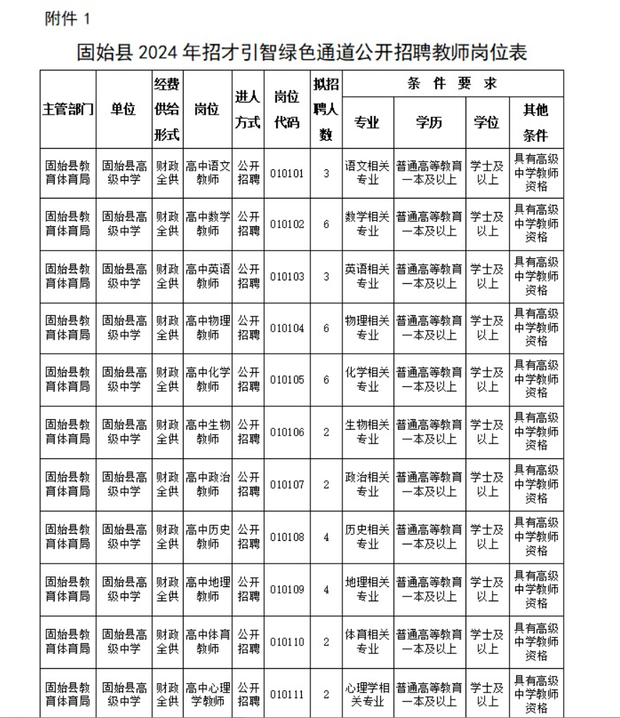 附件:1.固始縣2024年招才引智綠色通道公開招聘教師崗位表