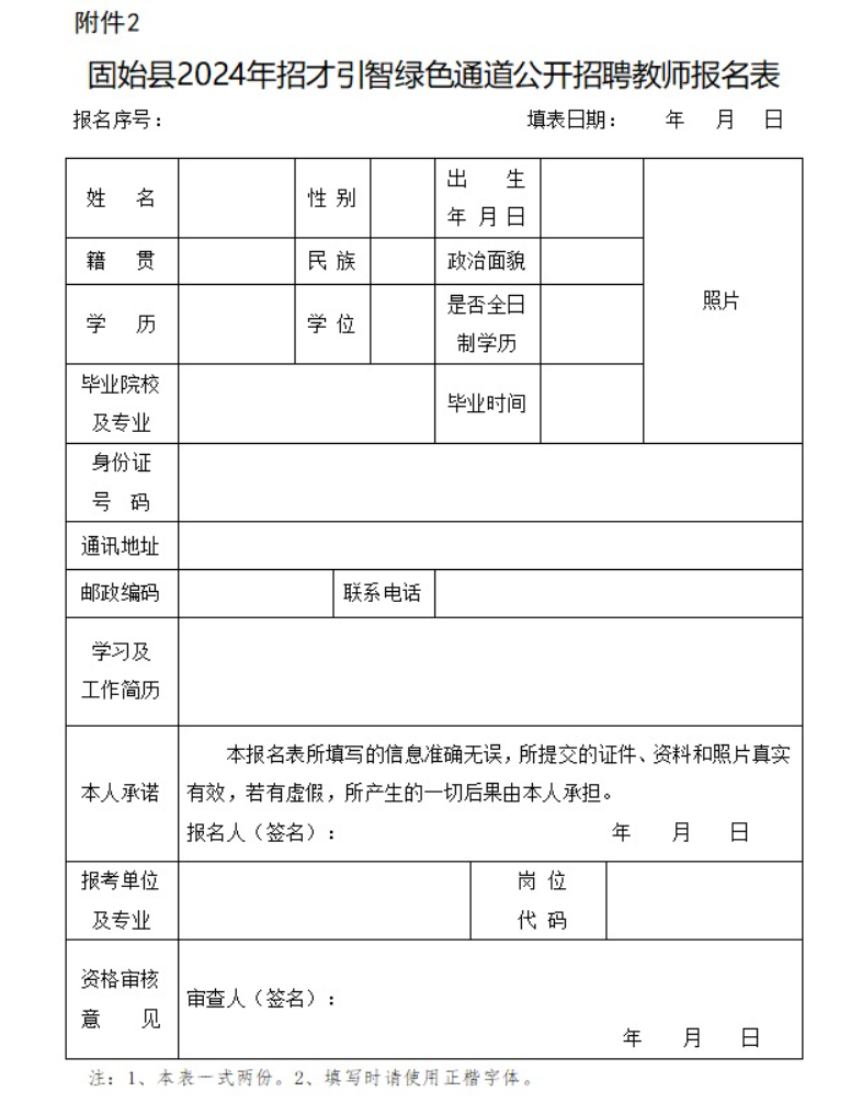 2.固始縣2024年招才引智綠色通道公開招聘教師報名登記表