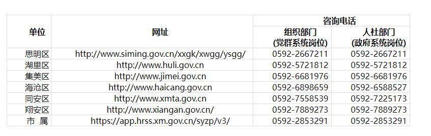 ?。忌鷯徫粓竺肟冢簑ww.fj99.org.cn或https://app.hrss.xm.gov.cn/syzp/v3/)