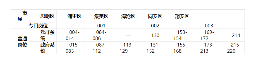 招聘崗位資格條件詳見《2024年廈門市事業(yè)單位公開招聘工作人員崗位信息表》(簡章附件1),考生也可通過“報名系統(tǒng)”點擊“招聘崗位查詢”按鈕查詢崗位條件,報名時請仔細對照查看崗位具體資格條件要求。崗位代碼分布如下表: