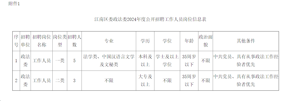 1.江南區(qū)委政法委2024年度公開招聘工作人員崗位信息表
