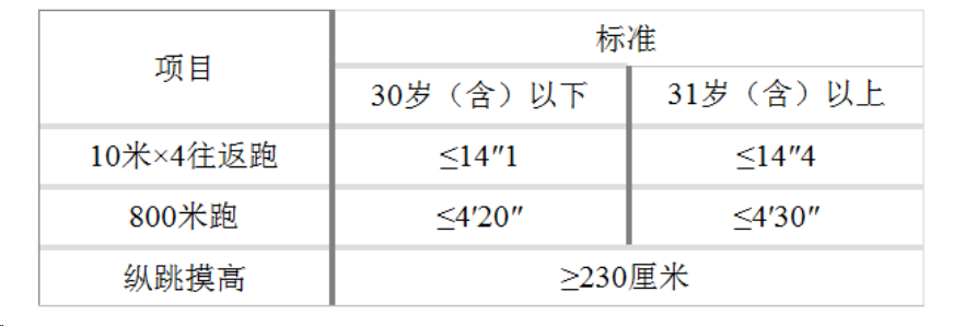 體能測評的項目和標準按照國家有關規(guī)定執(zhí)行,具體如下: