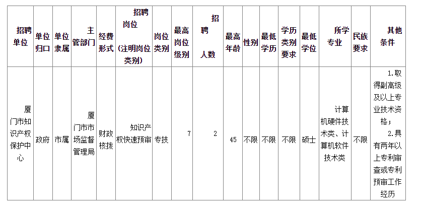 廈門市市場監(jiān)督管理局所屬事業(yè)單位廈門市知識產權保護中心簡化程序補充工作人員公告(2024年4月)