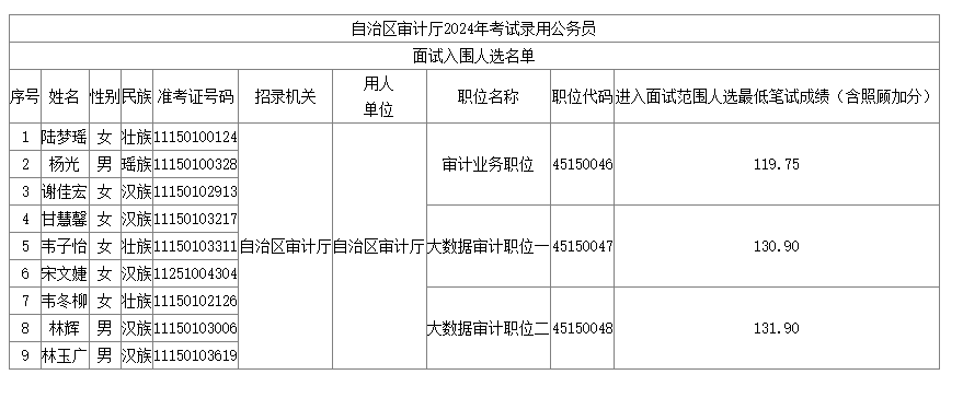 附件:1.自治區(qū)審計(jì)廳2024年考試錄用公務(wù)員面試入圍人選名單