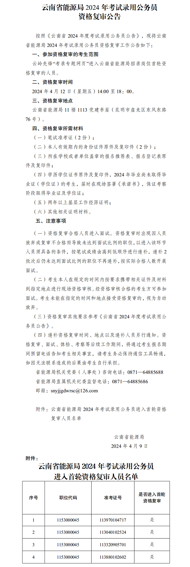 云南省能源局2024年考試錄用公務(wù)員資格復審公告