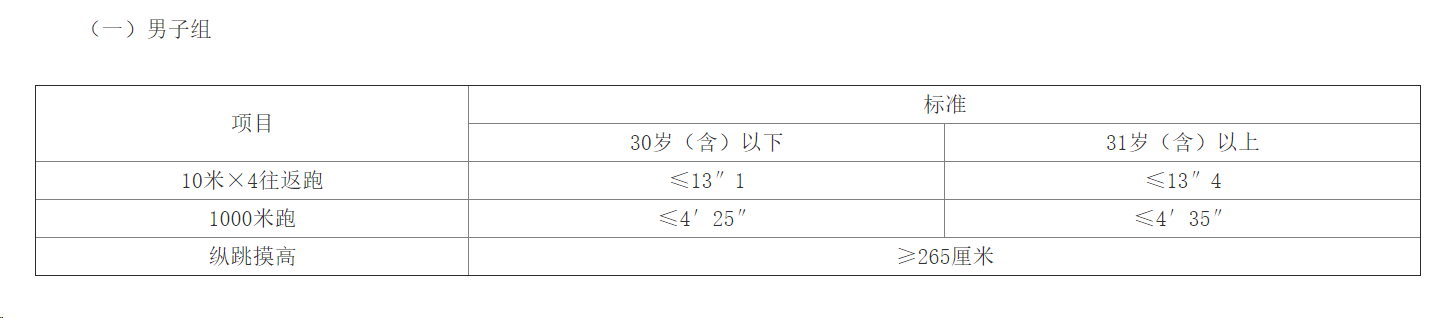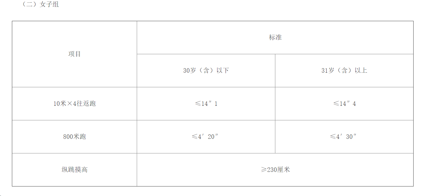 三、體能測評項(xiàng)目及合格標(biāo)準(zhǔn)