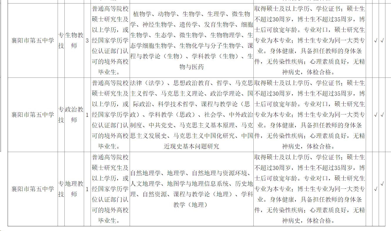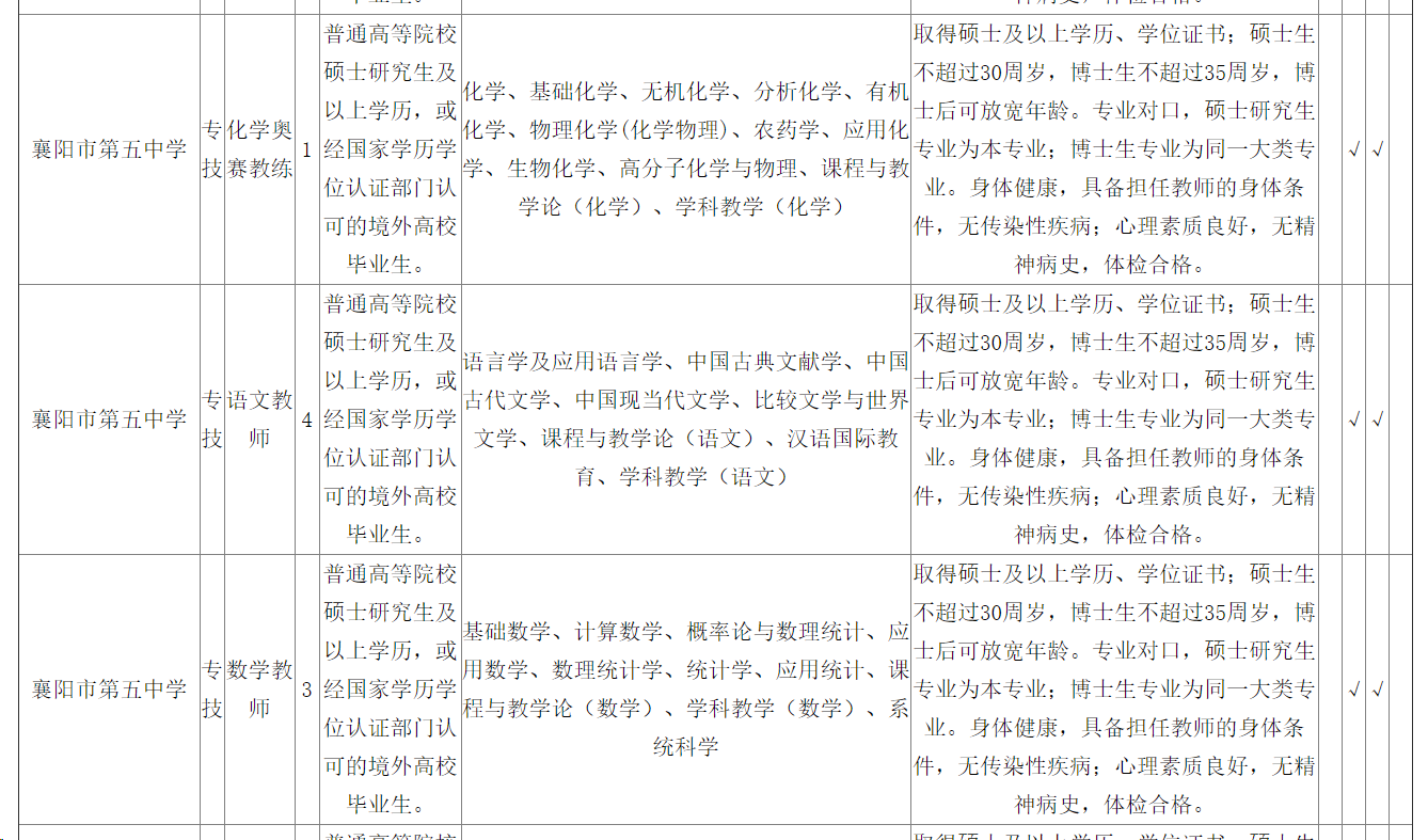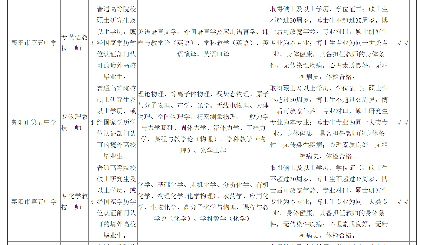 襄陽市第五中學2024年度公開招聘緊缺高層次專業(yè)人才公告