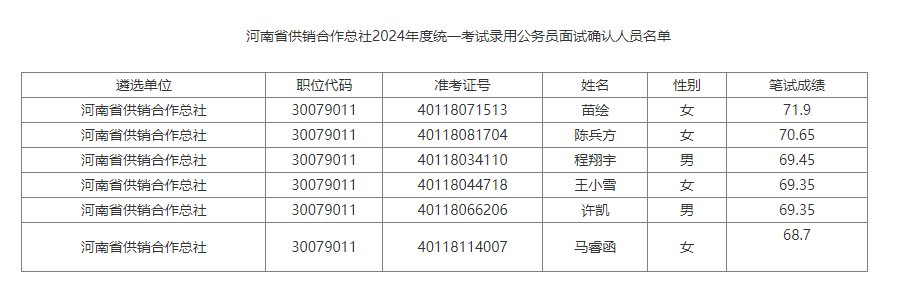 河南省供銷合作總社2024年統(tǒng)一考試錄用公務(wù)員面試確認(rèn)公告
