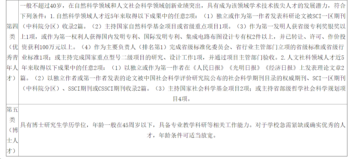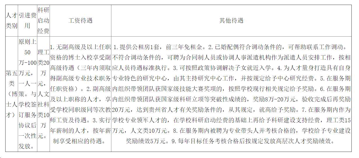 第一、二、三、四類人才引進(jìn)待遇面議,第五類人才引進(jìn)待遇如下: