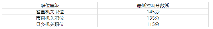 1.最低控制分數線。為確保錄用人員的基本素質,區(qū)別職位層級劃定進入面試資格復審人員的公共科目筆試總成績(不含公安專業(yè)考試成績)最低控制分數線,具體情況如下: