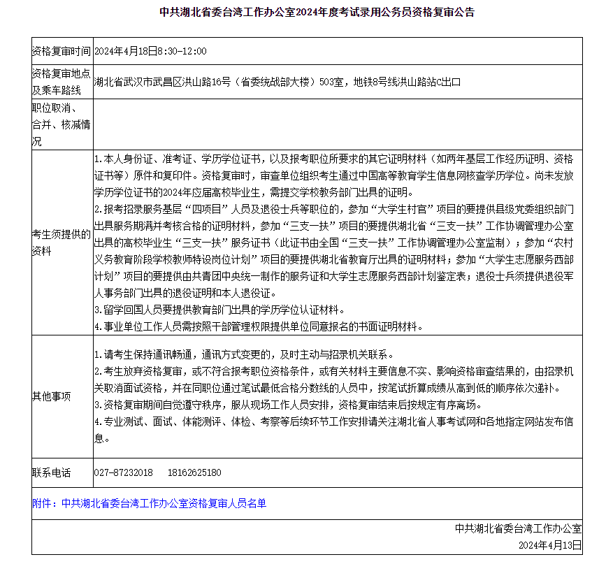 附件:中共湖北省委臺灣工作辦公室資格復審人員名單