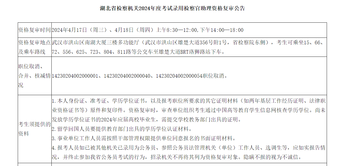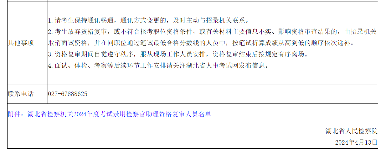 附件:湖北省檢察機關2024年度考試錄用檢察官助理資格復審人員名單