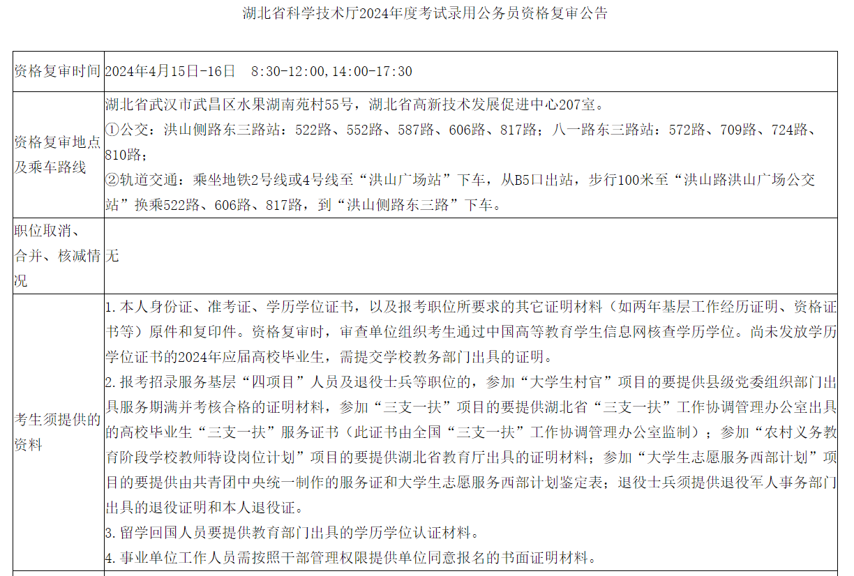 2024年湖北省科學(xué)技術(shù)廳公務(wù)員考試資格復(fù)審公告
