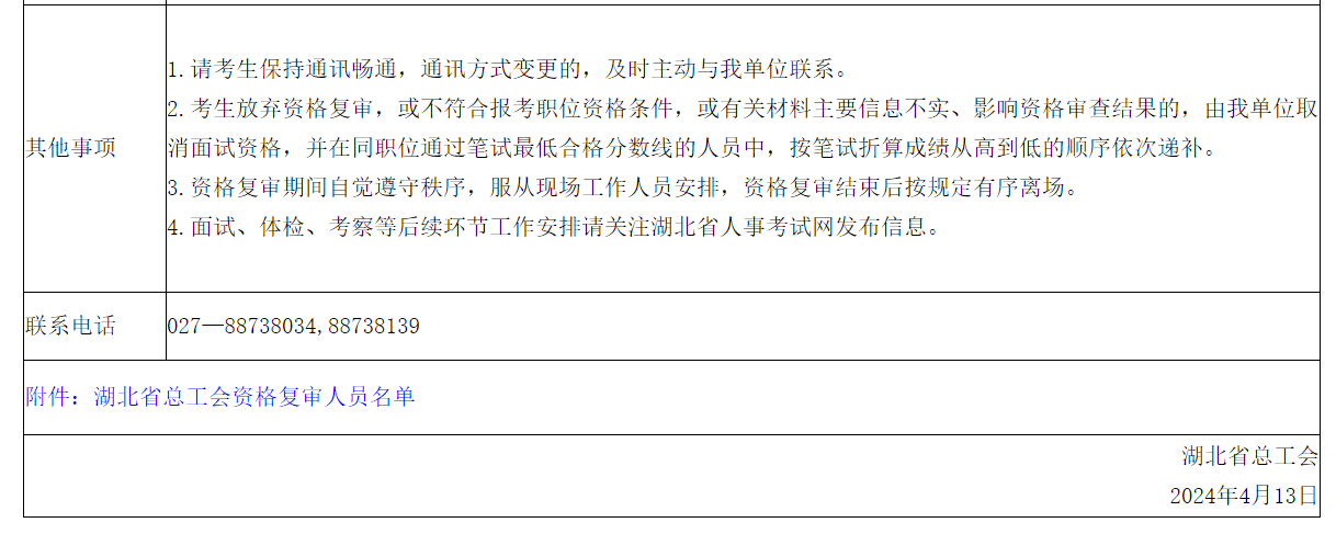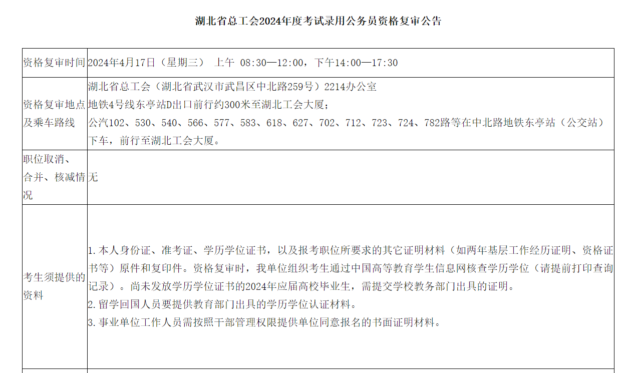 2024年湖北省總工會(huì)公務(wù)員考試資格復(fù)審公告