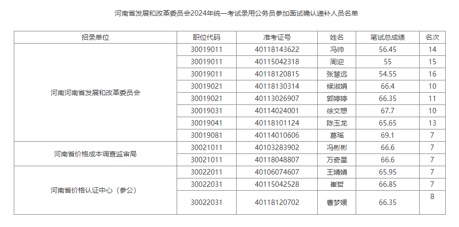 河南省發(fā)展和改革委員會2024年統(tǒng)一考試錄用公務(wù)員面試確認(rèn)遞補公告