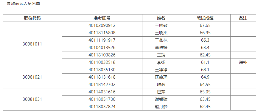 經(jīng)面試資格確認(并按規(guī)定遞補后),共確定12人進入面試,參加面試人員名單附后(見附件1)。