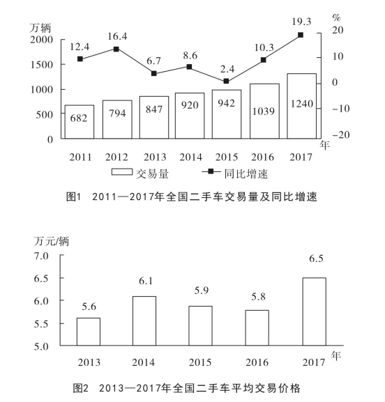 B.2011~2017年,全國二手車交易量同比增速第4高的年份,當(dāng)年二手車平均交易價格高于6萬元