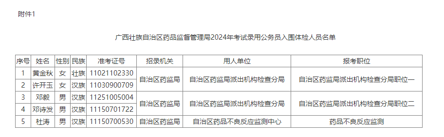 廣西壯族自治區(qū)藥品監(jiān)督管理局2024年度考試錄用公務(wù)員體檢公告