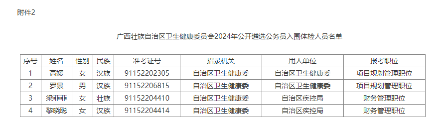 附件:1.廣西壯族自治區(qū)衛(wèi)生健康委員會(huì)2024年考試錄用公務(wù)員入圍體檢人員名單