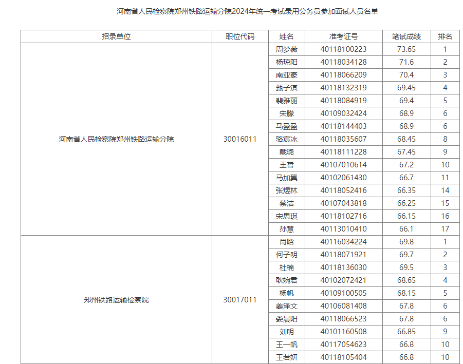2024年河南省人民檢察院鄭州鐵路運(yùn)輸分院公務(wù)員考試面試公告