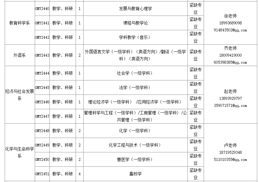 注:未列入計劃,符合學校學科專業(yè)建設(shè)需要的其他專業(yè)也可同時招聘。