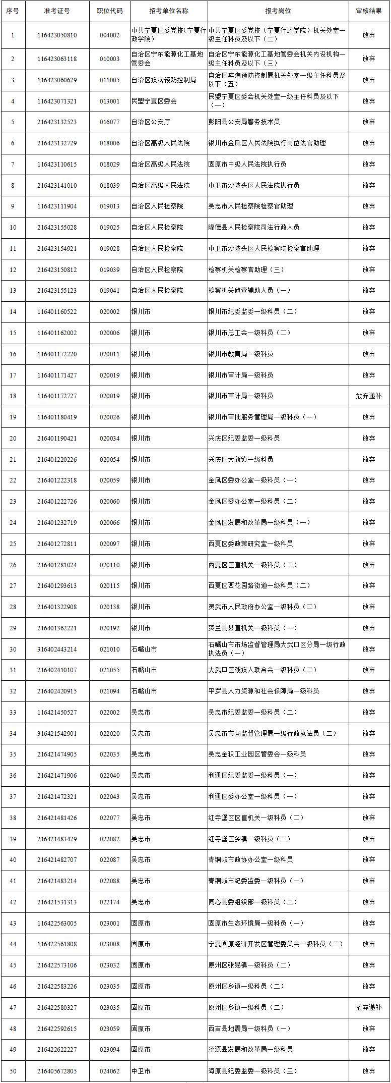 2024年寧夏公務員考試資格復審結(jié)果公告