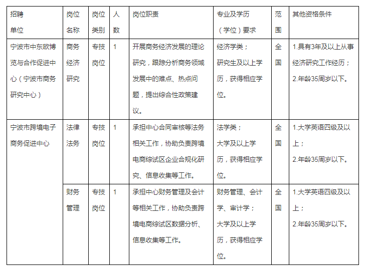 寧波市商務(wù)局所屬事業(yè)單位公開招聘工作人員公告