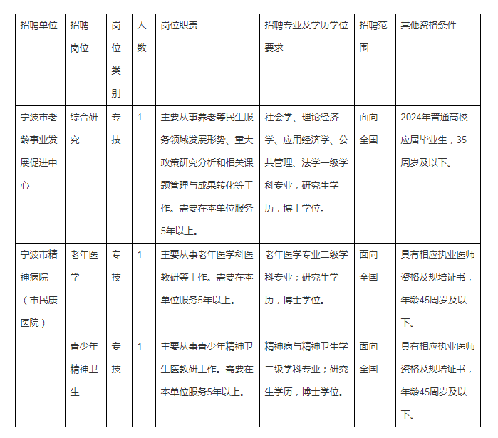 根據(jù)《寧波市事業(yè)單位公開招聘工作人員實施辦法》的有關規(guī)定,寧波市民政局所屬事業(yè)單位寧波市老齡事業(yè)發(fā)展促進中心和寧波市精神病院(市民康醫(yī)院)決定面向全國公開招聘高層次人才3名?,F(xiàn)就有關事項公告如下: