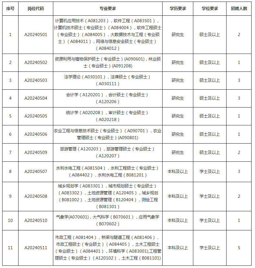 急需緊缺人才24名。崗位專業(yè)要求詳見下表: