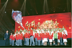 2023年10月17日,第六屆中國(guó)國(guó)際進(jìn)口博覽會(huì)志愿者上崗宣誓儀式在國(guó)家會(huì)展中心(上海)舉行,5700余名志愿者宣誓上崗。圖為當(dāng)日拍攝的志愿者總隊(duì)授旗儀式。新華社記者 劉穎/攝