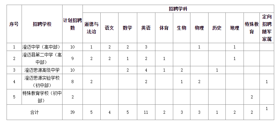為進(jìn)一步加強(qiáng)澄邁縣教育人才隊(duì)伍建設(shè),不斷提高我縣教育發(fā)展水平,根據(jù)《海南省事業(yè)單位公開招聘工作人員實(shí)施辦法》(瓊?cè)松绨l(fā)〔2018〕516號(hào))文件精神,現(xiàn)面向社會(huì)公開招聘39名教師,特公告如下: