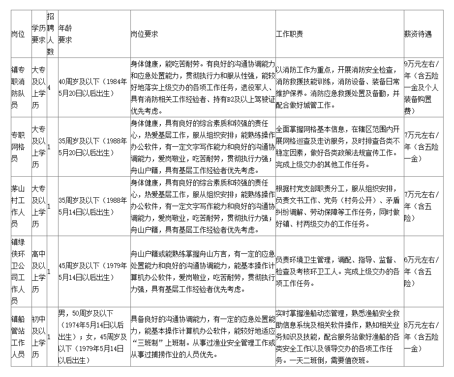 舟山市普陀區(qū)桃花鎮(zhèn)、村及下屬單位工作人員招聘公告