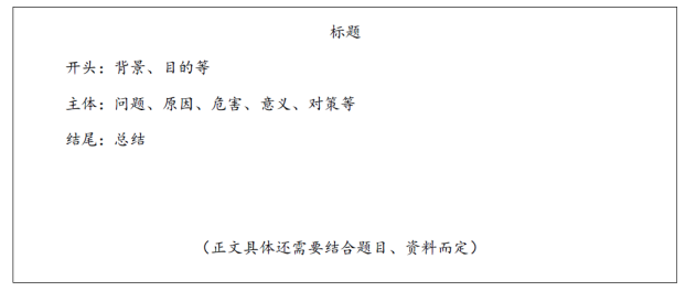 “開(kāi)頭”“過(guò)渡段”“主體部分”“結(jié)尾”都需要分段撰寫(xiě),每段需首行空兩格。其他書(shū)寫(xiě)要求如下: