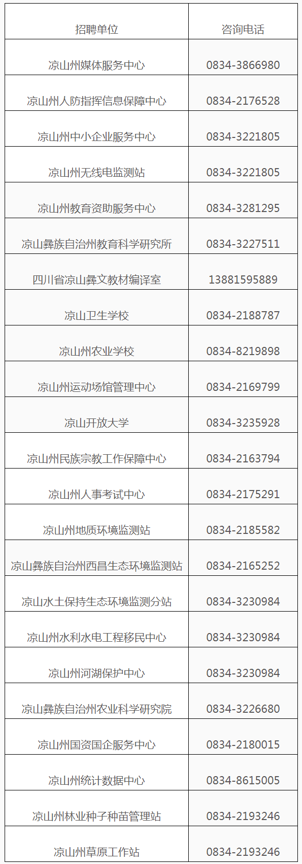 2.涼山州州屬事業(yè)單位2024年公開選調(diào)工作人員信息發(fā)布網(wǎng)址及咨詢電話