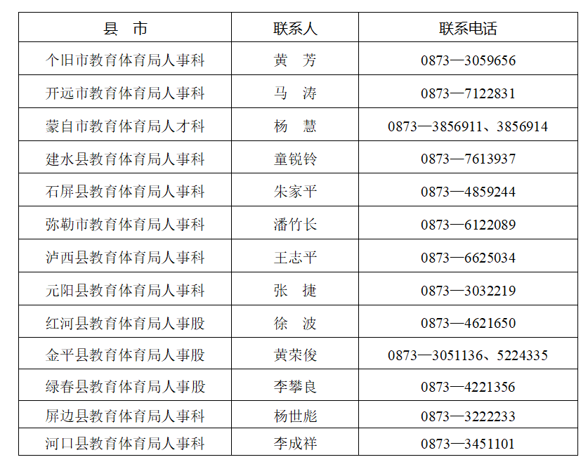 2024年紅河州個(gè)舊、開遠(yuǎn)、蒙自、建水、石屏、彌勒、瀘西、紅河、元陽、金平、綠春、屏邊、河口13縣市共招聘特崗教師1170名。(具體學(xué)段、學(xué)科招聘人數(shù)詳見附件1)。