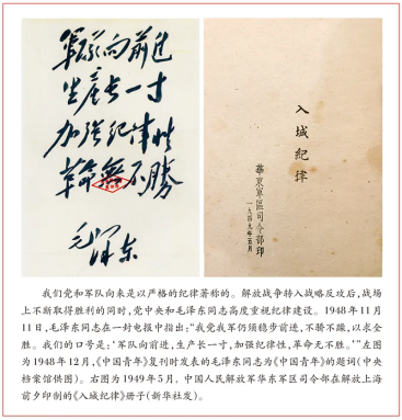 紀(jì)律上的要求稍微放松,病毒就會(huì)趁虛而入。比如前文提到,從1948年1月到1949年1月,黨中央反復(fù)多次強(qiáng)調(diào)加強(qiáng)紀(jì)律建設(shè),應(yīng)該說(shuō)總的情況是很好的,但也有極個(gè)別部隊(duì)思想上沒有始終繃緊弦。1949年4月23日,第三野戰(zhàn)軍第35軍進(jìn)入南京,南京解放,但入城部隊(duì)部分官兵破壞紀(jì)律的行為,嚴(yán)重?fù)p害了人民解放軍的聲譽(yù)和形象。毛澤東同志親自為中共中央軍委起草電報(bào),對(duì)此予以嚴(yán)厲批評(píng):“從三十五軍在南京數(shù)天內(nèi)所犯無(wú)政府無(wú)紀(jì)律錯(cuò)誤行為看來(lái),你們過(guò)去在準(zhǔn)備渡江時(shí)期,對(duì)于外交政策及其他許多事項(xiàng)(例如軍隊(duì)在城市中看戲、看電影、洗澡、坐電車、坐公共汽車等事必須和各界人民同樣買票,不許特殊,以及未得上級(jí)許可不得接受人民慰勞等)似乎沒有明確規(guī)定。如果沒有規(guī)定,你們應(yīng)速規(guī)定,通令各軍一體遵行。如果過(guò)去已有規(guī)定,三十五軍故意違犯,則除檢查該軍工作做出結(jié)論通令各軍外,應(yīng)向各軍重申前令,引起注意,不許再有違犯?!辈⒁蟆稗D(zhuǎn)發(fā)華野、中野,各軍、各師以資警惕”。