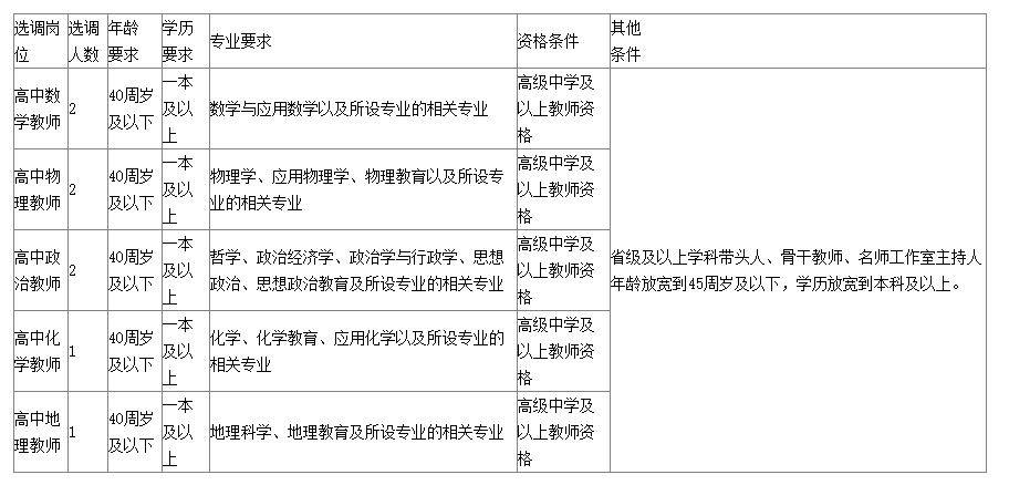 符合上述調(diào)配基本條件,且屬于省級及以上學(xué)科帶頭人、骨干教師、名師工作室主持人的,可免筆試和面試。