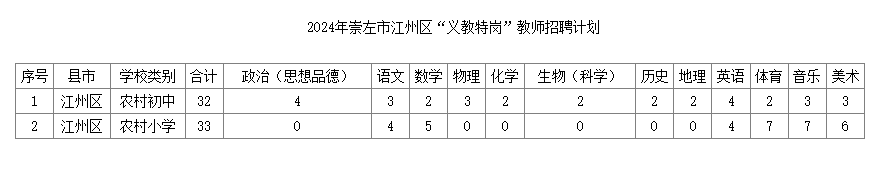 附件:2024年崇左市江州區(qū)“義教特崗”教師招聘計(jì)劃