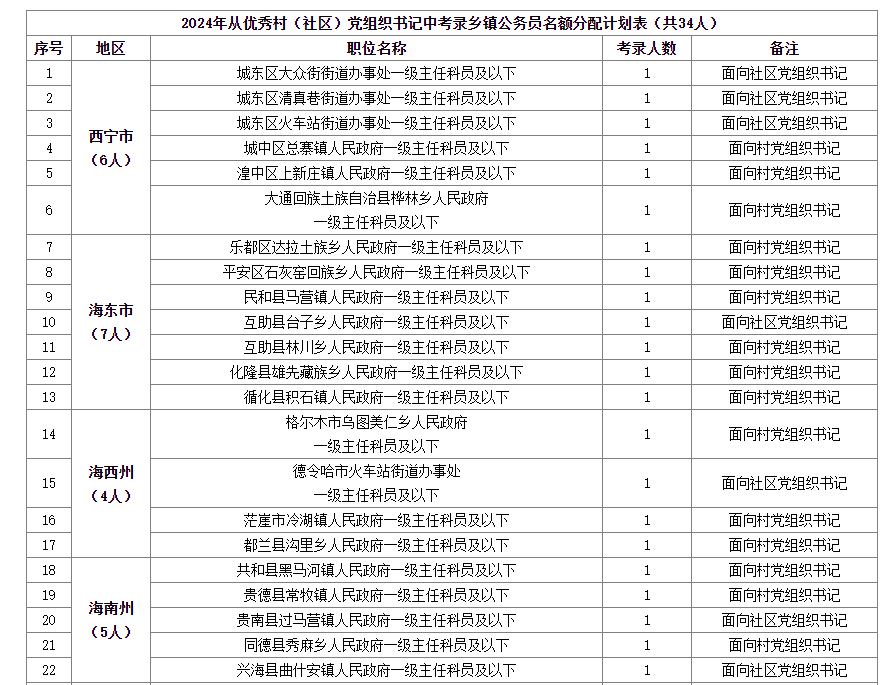 青海省2024年從優(yōu)秀村(社區(qū))黨組織書記中考錄鄉(xiāng)鎮(zhèn)公務(wù)員公告