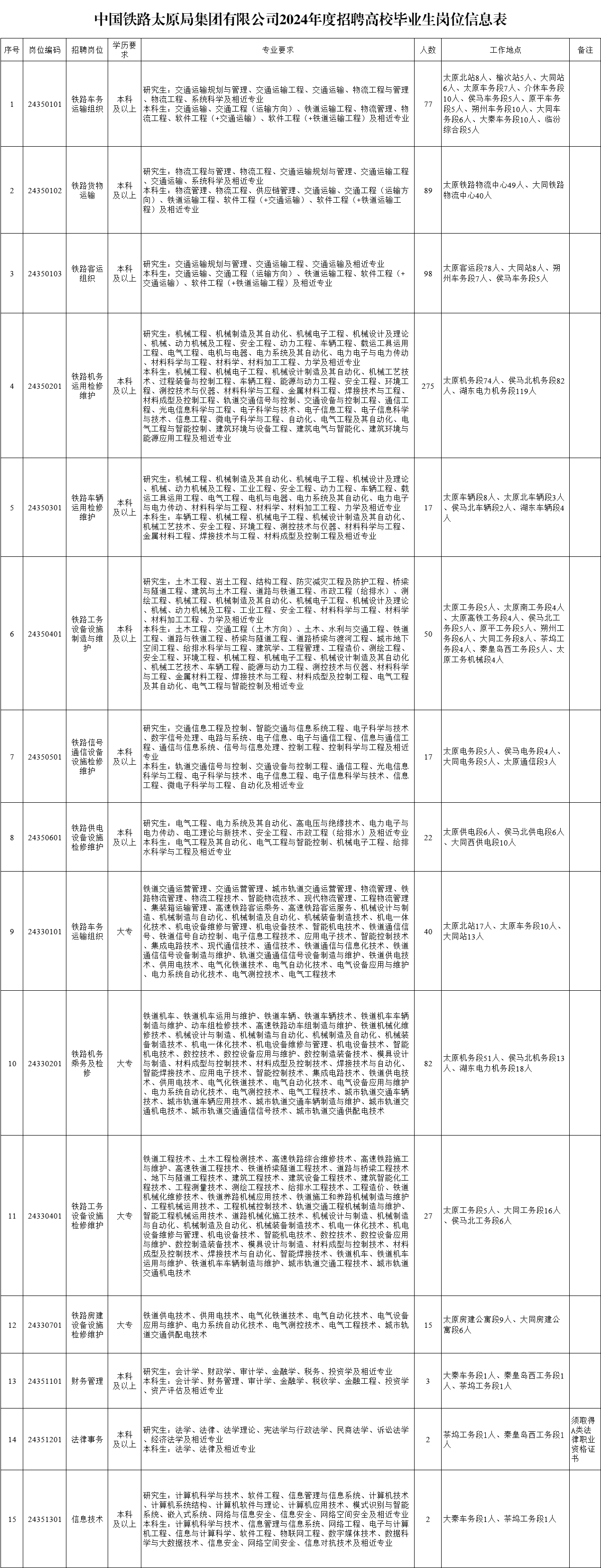 中國鐵路太原局集團有限公司2024年招聘高校畢業(yè)生公告(三)