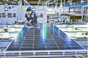 今年以來,各地區(qū)各部門在發(fā)展新質(zhì)生產(chǎn)力上勇爭先、出實(shí)招,大力發(fā)展新能源等戰(zhàn)略性新興產(chǎn)業(yè)。圖為2024年5月11日,內(nèi)蒙古包頭市一家太陽能科技有限公司的工人在生產(chǎn)車間作業(yè)。新華社記者 李志鵬/攝