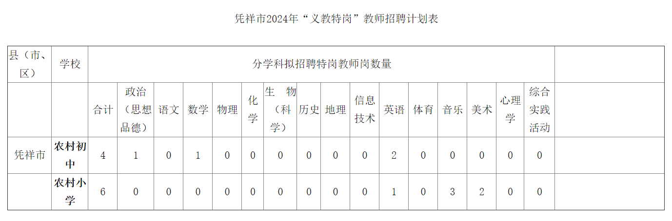 附件:憑祥市2024年 “義教特崗”教師招聘計劃表