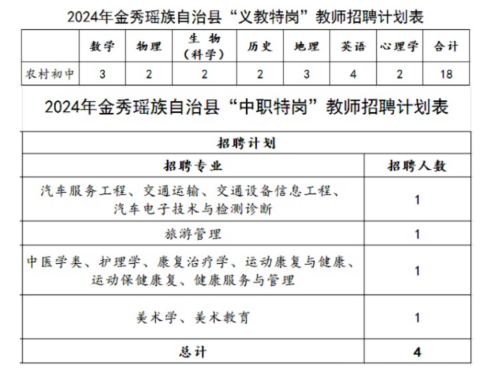 金秀瑤族自治縣2024年公開招聘特崗教師公告