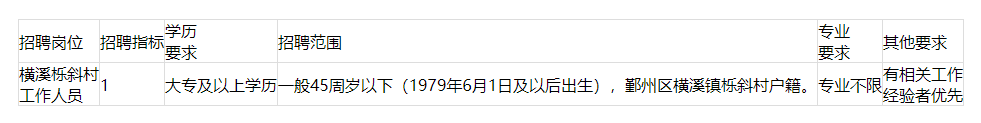 因工作需要,寧波市鄞州區(qū)橫溪鎮(zhèn)人民政府擬面向社會招聘農(nóng)村工作人員1名。具體要求如下: