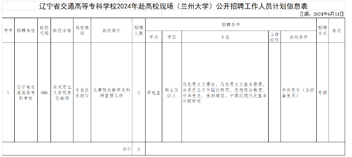 遼寧省交通高等專科學(xué)校2024年赴高?,F(xiàn)場(蘭州大學(xué))公開招聘工作人員公告